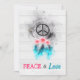 It also has a Hippie Gypsy cool artistic and creative Boho Vintage grunge Peace Sign Symbol with a few Bohemian Pink Daisy Flowers and Turquoise Blue Feathers designed for this lovely floral and feathers groovy Dream Catcher NEUTRAL BABY SHOWER INVITATION *