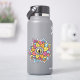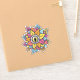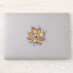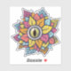 Spooky reptile eye sticker with a digital art of a weird eyeball with reptile iris and pupil surrounded with colourful petals. This crazy surreal illustration has fun yellow, orange, coral, pink and light blue colours with decorative elements and, being so strange, is great for Halloween.