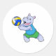 Hippo as Volleyball player with Volleyball Classic Round Sticker