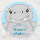 Cute hippo baby shower design is perfect for a safari theme baby shower! The blue background makes it great for a baby boy on the way!