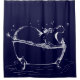 Hippo Bath Fun Illustration Navy Blue Shower Curtain