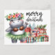 Hippo Christmas Themed for Animal Lovers Holiday Postcard