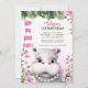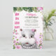 Hippo Pearls Pink Floral Girl Birthday Invitation