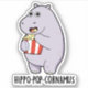 Hippo-pop-cornamus Funny Hippo Pun features a cute hippo enjoying a box of popcorn. Perfect pun gift for family and friends who love cute animal hippo puns.