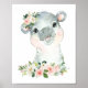 Hippo, Safari, Jungle, Pink Flowers, Girl Nursery Poster