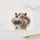 This watercolor wildlife postcard features a detailed portrait of a hippopotamus partially submerged in calm water, capturing the quiet strength and gentle presence of one of Africa’s most fascinating animals. The soft lighting and warm natural tones highlight the hippo’s expressive eyes and textured skin while delicate ripples create a peaceful reflection across the water’s surface.