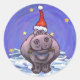 Hippopotamus Christmas Classic Round Sticker