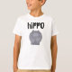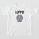 Hippopotamus T-shirts, long sleeve tees, organic bodysuits, tutu bodysuits, football bodysuits, rompers, sweatshirts, pullover hoodies, hats, raglan sleeve t-shirts, and other baby, toddler, and kids apparel featuring a cute grey hippopotamus and text that reads Hippo!