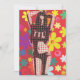 A colourful design of an invitation suitable for a flower power, hippy 1960s or 70s retro themed party. This invitation features colourful flower pattern with a flower child lady dancing. The back of the invitation may be customised to include your own information.
