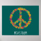 A cute peace sign flowers design with customisable text for a boho girl's room. Hippy 1960s free love happy hippy groovy vibes. Suitable for a flower child.
