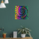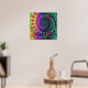 A psychedelic hippy style fractal pattern illustration in rainbow colours.