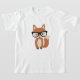 Adorable cute baby fox cartoon graphic animal with hipster glasses on his face. A trendy and fun reddish brown orange fox sitting with a poufy tail, learning and reading with his spectacles.