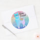 Hipster Llama Rainbow Glitter Ombre Classic Round Sticker