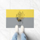 Modern design features bust of Olympic God Zeus / Jupiter with hipster glasses, foliage and geometric elements on yellow grey colorblock background. Add name or monogram in classic black font