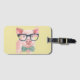 Cute luggage tag features hipster pink pig with oversized glasses and a fancy bow tie