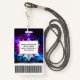 Hipster Retro Tech Teal Purple Lotus Flower Leaf ID Badge