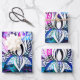 Hipster Retro Tech Teal Purple Lotus Flower Leaf Wrapping Paper Sheet