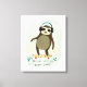 This watercolor print features a skater sloth rolling with his jams | By June Erica Vess