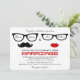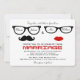 Hipster Wedding Invitation in black, white and red. Glasses, moustache and red lips. If you have trouble customising the text please use the contact link below.