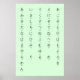 This poster shows hiragana characters with romaji phonetic pronunciation to help you learn and remember basic Japanese characters. This simple and economical learning tool can be used in classrooms and around your home or office for easy reference.