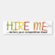 Hire Me Before Your Competition Does Bumper Sticker. Any man or woman will love this. Customise by adding photo, name, text, image or colour. Change the background colour by selecting edit and background to cream, ivory or any shade of yellow, red, blue, green, orange, purple or pink.