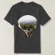 A digital painting of a buck head with a view of a mountainous landscape view between his antlers.