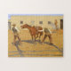 This fun His First Lesson 1903 by Frederic Remington jigsaw puzzle depicts some cowboys first attempt to teach a young horse.