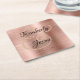 His & Her Names, Brushed Rose Gold Metal Wedding Square Paper Coaster