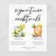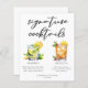This His & Hers rum based signature cocktails menu sheet features simple black typography above 2 of your favourite drinks and their ingredients for your coastal wedding bar. A chic Mojito and Mai Tai drawing add a fun flair to your bar menu. Complete with the couple's names and date for their reception.