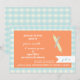 This shower invitation features a gingham background and a cute rolling pin and wrench illustration. Customise this design with your event's details and font of your choice.