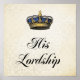 "his lordship", lordship, his, fun, funny, humourous, lord, fancy, title, posh, manor, king, magesty, highness, royal, royalty, aristocratic, aristocrat, rich, wealthy, castle, humour, crown, blue, "his and hers", "mr and mrs", husband, man, "for him", men, head, household, home, house, prince, duke, knight, honour, honoured, knighthood,