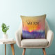 Throw pillow depicts a beautiful watercolor painting with a simple orange and yellow sunrise over a foggy blue field. It features inspirational quote, "His mercies are new every morning."