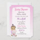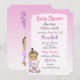 Hispanic or African American Baby Girl with Teddy Bear Baby shower invitations with purple and pink background.