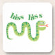 A dark and light green snake with red forked tongue and green text that reads Hiss Hiss on T-shirts, mugs, bags, cards, pillows, magnets, and more, great for kids and adults.