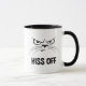 Pissed off cat says Hiss Off. Funny sarcastic quote accessory for a sassy, anti-social friend who wants to be left alone. Features a graphic of an angry cartoon cat face. Perfect gift for introvert kitty and cat lovers who are a little antisocial and want their space. Hiss off!