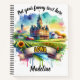 In this vibrant illustration, a historic building in Iowa stands majestically amidst lush fields, sunflowers blooming, and colourful skies all around, capturing the spirit of rural beauty.