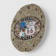 Place a conversation piece on your man cave, workshop or garage wall with this custom 10.75 inch diameter acrylic wall clock sporting a nostalgic Williams Arizona, gateway to the Grand Canyon, Route 66 oval sticker-like design over a sandy textured background. The oval design collage is comprised of a photograph of a well house wall along a walkable segment of Route 66 in Parks, AZ as the background and the two emblems are from a photograph of the Arizona Historic US Route 66 sign. The sandy background and numbers are template items so you can clear them if you'd like this clock design without numbers and to have a solid background colour. Click the orange Customise it! button to add text like a name, family or business name or quote. Be sure to check out the smaller 8 inch diameter and 10.75 inch square options for the design.