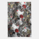 History repeats, rose skull pattern with butterflies in black white red, pink and yellow.