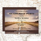 A retro retirement party invitation featuring a road with a camper van in the distance in a rural landscape. The dark brown bar at the bottom of the front side of the card is a separate object and can be removed in the advanced editor if you do not need it.