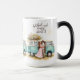 Celebrate your love story and romantic adventure with this enchanting morphing mug. The moment you pour a hot drink, this magical mug reveals a beautiful, vibrant design. It features a quaint, vintage camper van painted in gentle teal and cream, overflowing with a profusion of watercolor flowers like daisies, goldenrod, and morning glories.