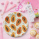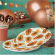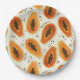 A pattern of hand drawn tropical papaya fruit halves in colours of bright, deep orange complete with seeds. The papayas are surrounded by dots and the funny greeting "hiya papaya" in hand written text for an added bit of fun. My Hiya Papaya fruity pattern is a cheeky twist on the usual tropical fruit designs!