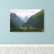 Canvas print of a landscape with a curvy road into green Hjelle valley surrounded by high mountains in Norway.