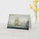 Very nice, heavy cardstock. Smooth writing surface, sturdy envelopes. no personalization but the transfer of the image was fantastic. Beautiful blues, greens and greys in various shades and levels of intensity really bring the artwork to life. You can almost hear the waves lapping the ships!
