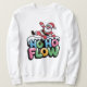 A joyful Santa mid-dance with lively lettering “Ho Ho Flow” — a playful party-ready design for holiday events, ugly-sweater alternatives and anyone who wants a dancing-forward Christmas tee.