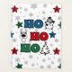 Ho-Ho-Ho Christmas design with snowflakes, snowman, Christmas tree, reindeer and colourful stars decoration on white background