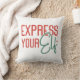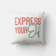 Fun Christmas throw pillow reads Express Your Elf on one side with red and green text, and Ho Ho Ho on the other side!