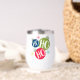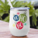 Ho Ho Ho Festive Christmas Decorations Holiday Thermal Wine Tumbler features three whimsical Christmas baubles with the text "Ho Ho Ho" in modern typography accented with snowflakes. Perfect for holiday decorating and gift wrapping. Bright, colourful and fun. Designed by Evco Holidays www.zazzle.com/store/evcoholidays