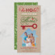 Ho Ho Ho From Our New Home, Elegant Script And Modern Typography Design On A Brown Kraft Paper Background With A Key And A House Cutout Photo Template, Holiday Moving Announcement Photo Card.