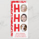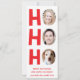 Personalise this funny and merry spirited Christmas holiday photo card with three of your own photos as well as a personalised message of good cheer. Santa inspired "Ho Ho Ho" text gets a in classic twist in red and white with a modern and bold removable backer pattern of snowflakes making this card a festive choice for your holiday card this year.