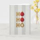 This card has a cool vertical layout that makes you think of Christmas right away. In big golden letters, it says "HO HO HO", but the 'O's are shiny red ornaments. Everything is neat and centered so your eyes go straight down the card. It feels fancy and happy, like a new version of holiday symbols but not too busy. The lighting is soft, making the gold shine and the red look soft and touchable.